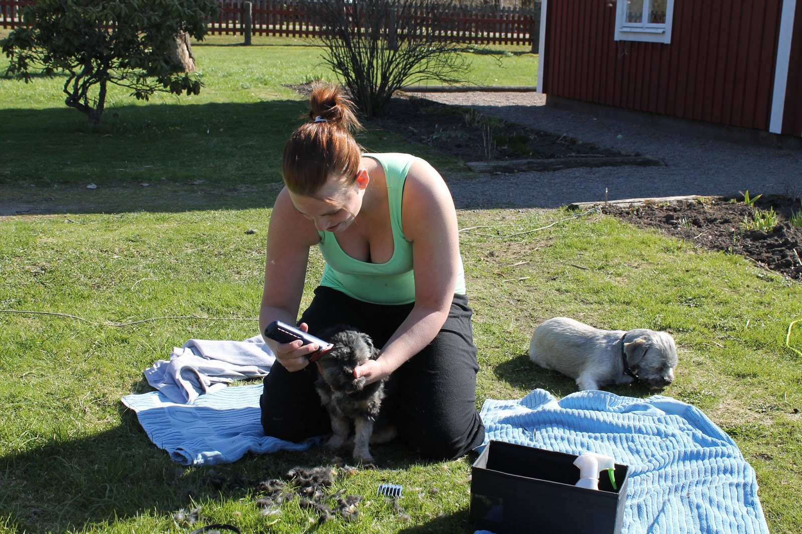 När dottern var färdig med fönsterrutorna tog hon sig an Elsa. Klippte henne så fin, och ryckte öronhåret. Tack min älskade dotter för hjälpen med allt! Så fina de är, Elsa och Signe.